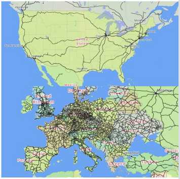 Pic culled from FB, comparing the rail networks of U.S. vs. Europe.
