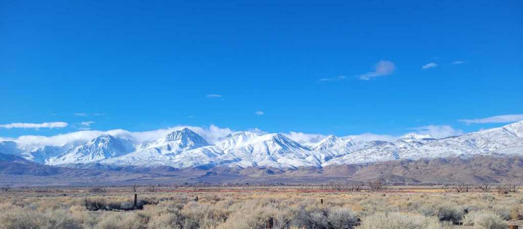 Those views. And, the quiet. I heard a cow mooing in the distance, and it was loud enough to catch my attention. Once in a while a car drives by, but the mountains to the east have a “CHAINS REQUIRED” sign and there are probably better ways to get to Death Valley anyway.